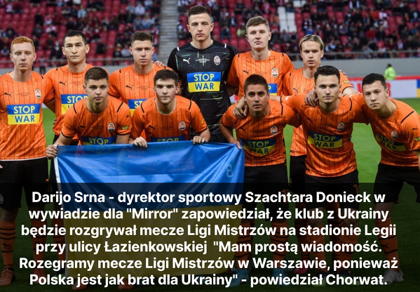 Dyrektor generalny Szachtara potwierdza, że jego klub zagra mecze LM w Warszawie