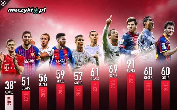 Dzięki hattrickowi przeciwko Łotwie dzisiejszej nocy Lewandowski ma najwięcej bramek w 2019 roku 38