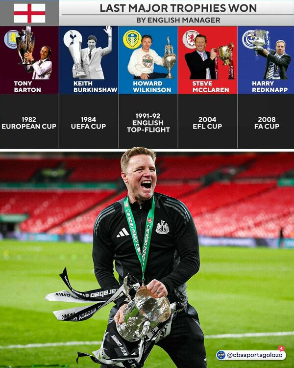 Eddie Howe to pierwszy od 2008 roku, angielski trener, który wygrał trofeum w Anglii