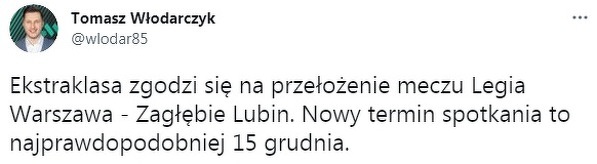Ekstraklasa przełoży mecz Legii z Zagłębiem