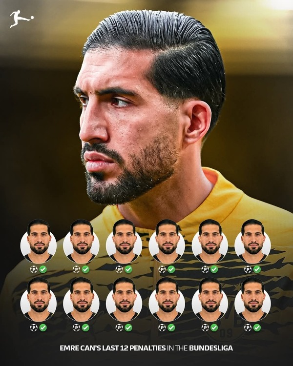 Emre Can nigdy nie zmarnował rzutu karnego w Bundeslidze