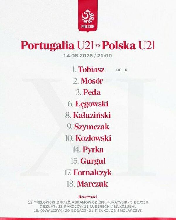 Euro U-21: Skład Polski na mecz z Portugalią