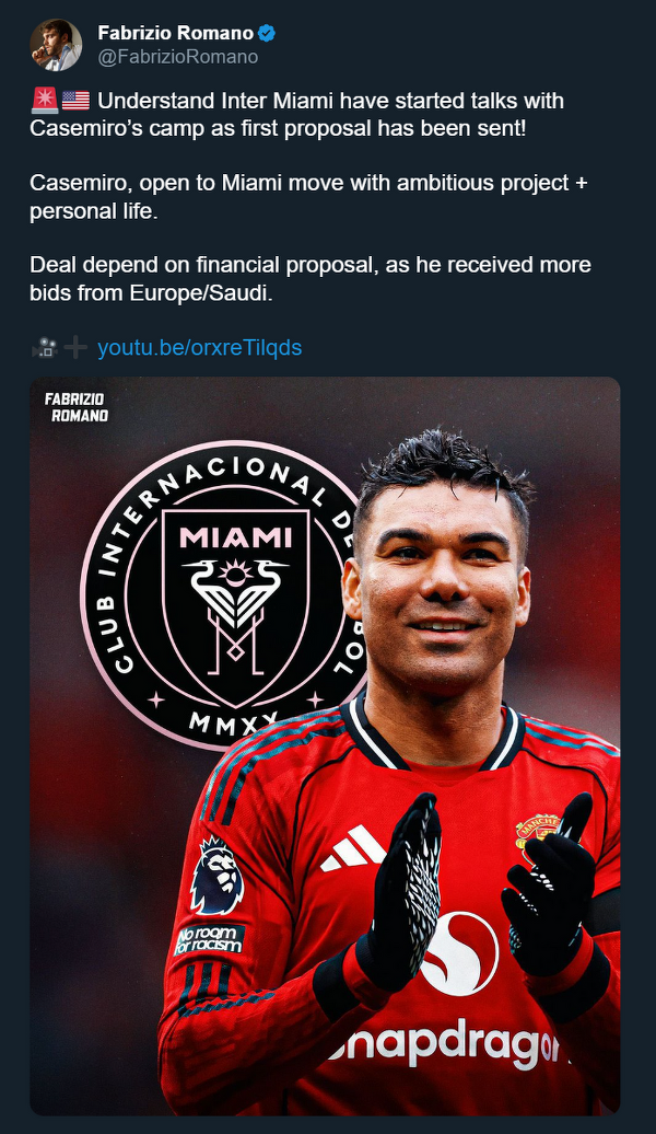Fabrizio Romano: Casemiro otwarty na przenosiny do Inteu Miami