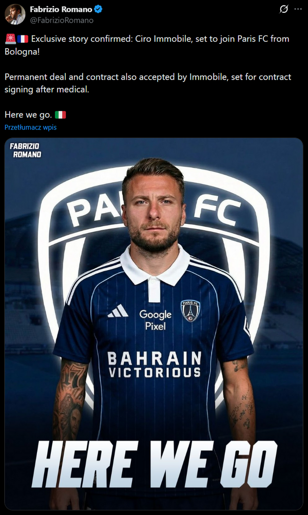Fabrizio Romano: Ciro Immobile zostanie piłkarzem Paris FC