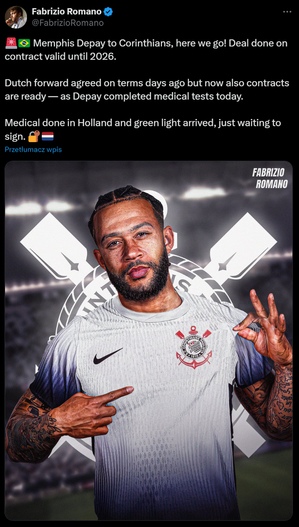 Fabrizio Romano: Depay ma podpisać kontrakt z Corinthians