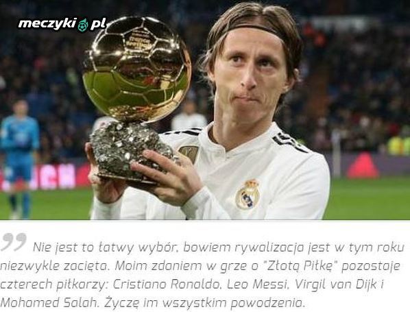 Faworyci do wygrania"Złotej Piłki"wg Luki Modricia