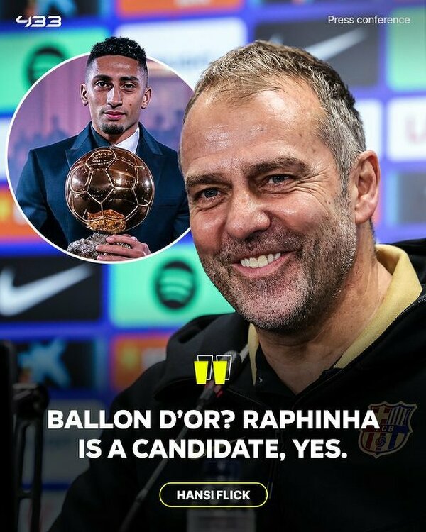 Flick uważa, że Raphinha ma szansę, aby wygrać Złotą Piłkę