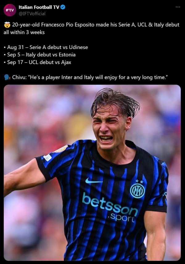 Francesco Pio Esposito z kolejnym debiutem. Tym razem w Lidze Mistrzów