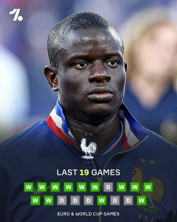 Francja nigdy nie przegrała meczu na wielkim turnieju z Kante w składzie