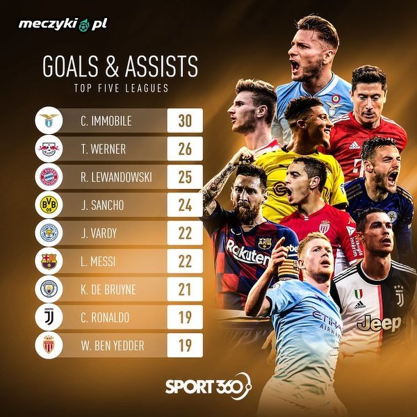 Gole + asystuje w „5 dużych ligach”. Brak graczy z Paris Saint-Germain lub Liverpoolu!?!
