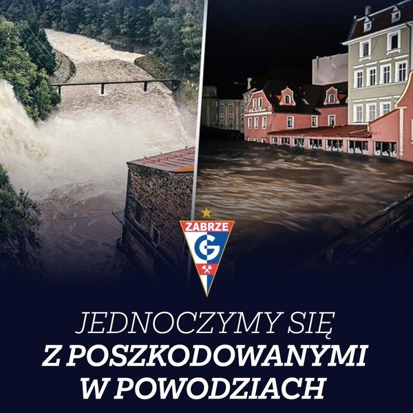 Górnik Zabrze przekaże 100 tysięcy PLN dla poszukiwanych osób w związku z powodziami, jakie nawiedzają nasz kraj