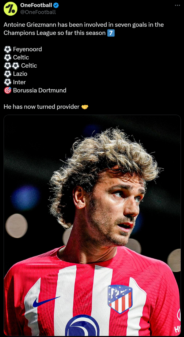 Griezmann miał już udział w siedmiu golach Atletico w tym sezonie Ligi Mistrzów