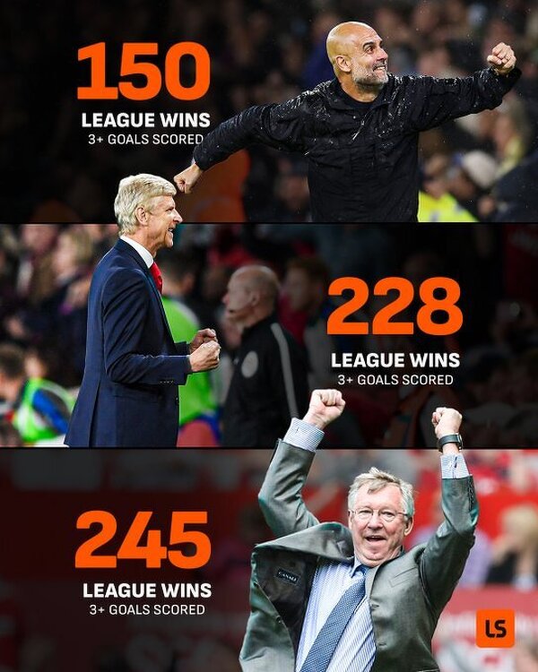 Guardiola został trzecim trenerem w historii Premier League, który osiągnął 150 zwycięstw różnicą co najmniej trzech bramek