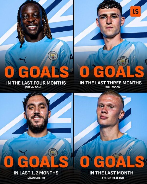 Gwiazdy Man City od dłuższego czasu nie mogą znaleźć drogi do bramki