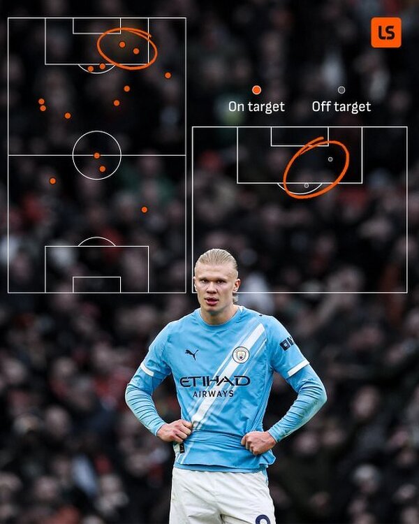 Haaland miał dzisiaj tylko dwa kontakty z piłką w polu karnym