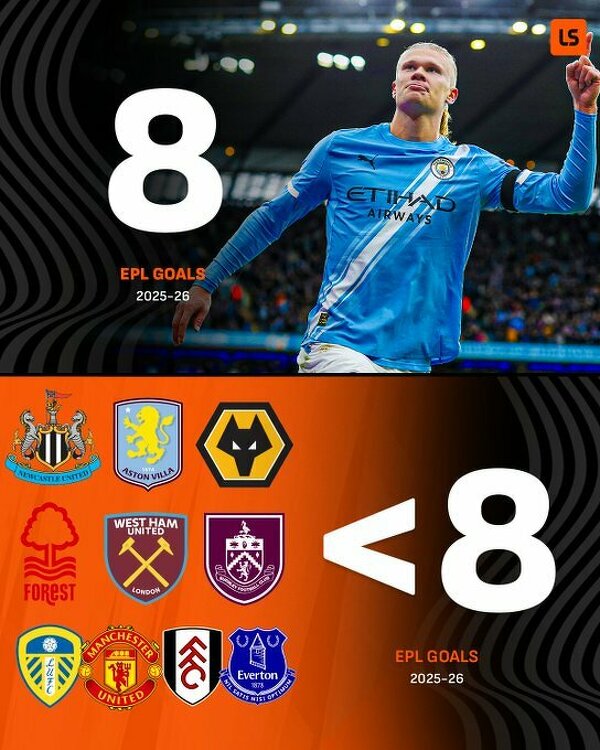Haaland strzelił w tym sezonie więcej goli w lidze niż 10 drużyn Premier League