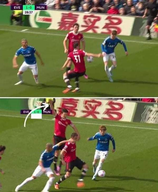 Harry Maguire podczas wczorajszego meczu z Evertonem zgłosił sędziemu rękę swojego kolegi z zespołu