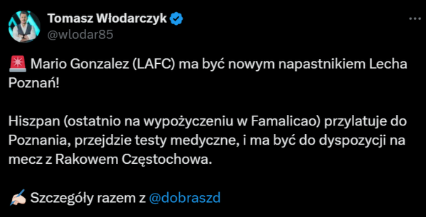 Hiszpan Mario Gonzalez zostanie nowym napastnikiem Lecha Poznań