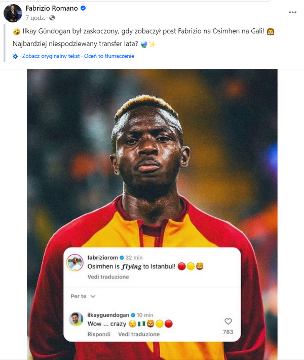 Ilkay Guendogan skomentował transfer Osimhena do Galatasaray