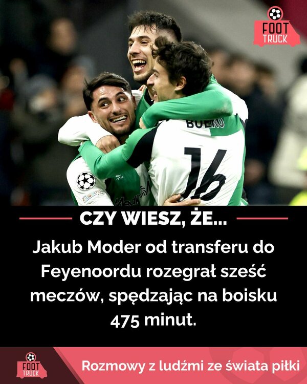 Jakub Moder gra i to gra dużo po transferze do Feyenoordu