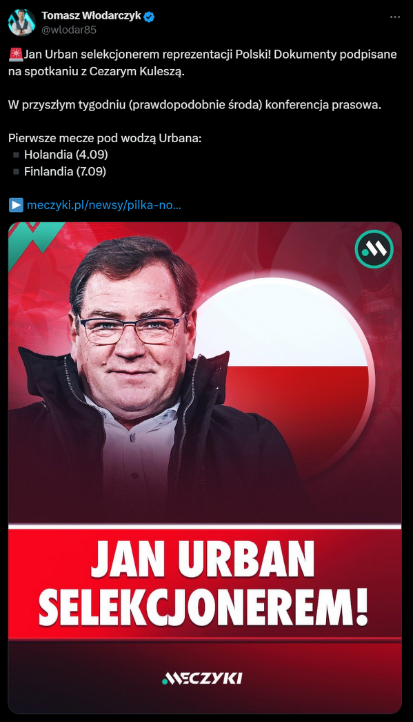 Jan Urban zostanie selekcjonerem reprezentacji Polski