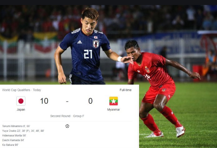 Japonia gromi Myanmar w meczu eliminacji Mistrzostw Świata 10-0!