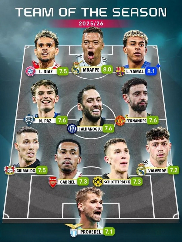 Jedenastka najlepiej ocenianych zawodników według Flashscore w 2025 roku