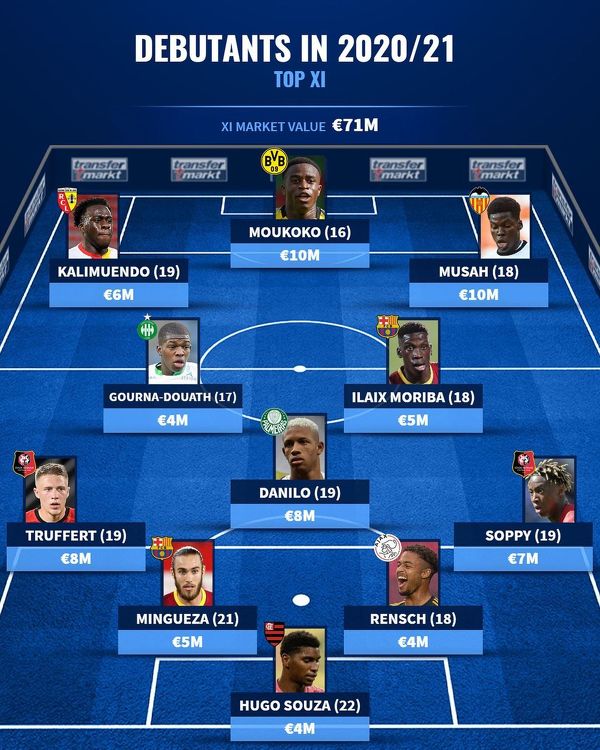 Jedenastka najwyżej wycenianych piłkarzy, którzy debiutowali w tym sezonie w seniorskiej piłce