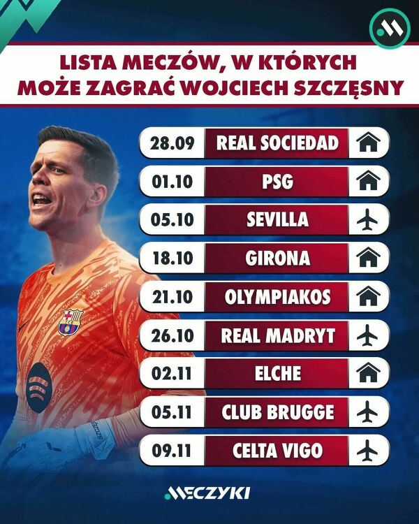 Joan Garcia wypadł z kontuzją na 4-6 tygodni. Oto mecze, w których może zagrać Wojciech Szczęsny