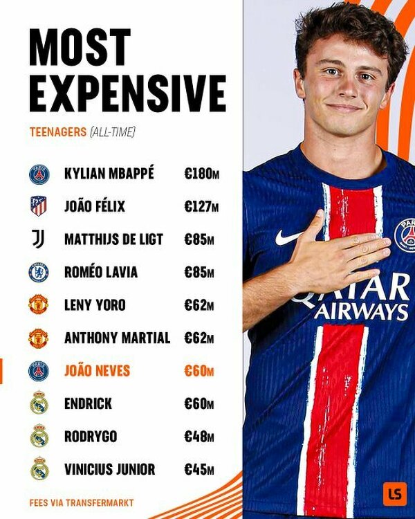 Joao Neves został siódmym najdroższym nastolatkiem w historii futbolu