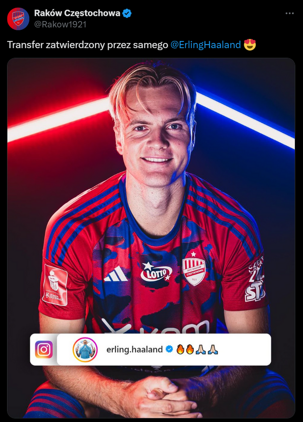 Jonatan Braut Brunes dołączył do Rakowa na zasadzie wypożyczenia. Norweg jest kuzynem Haalanda