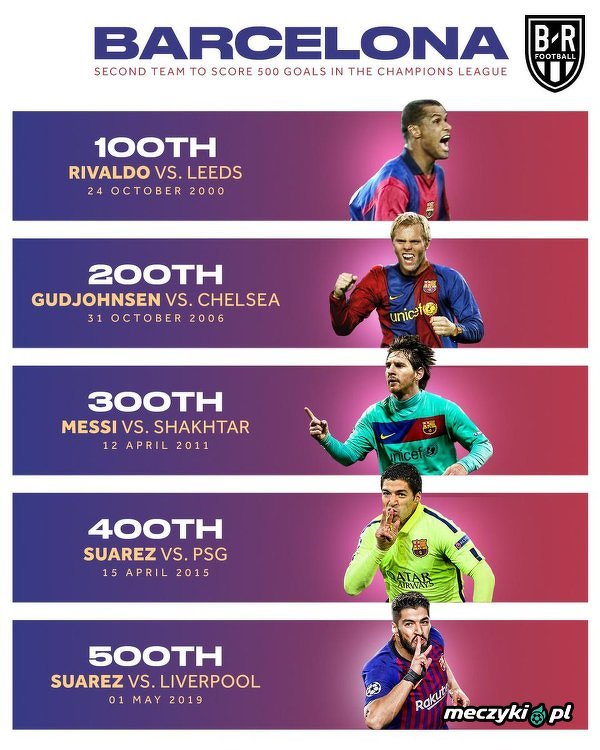Jubileuszowe gole Barcelony w Lidze Mistrzów