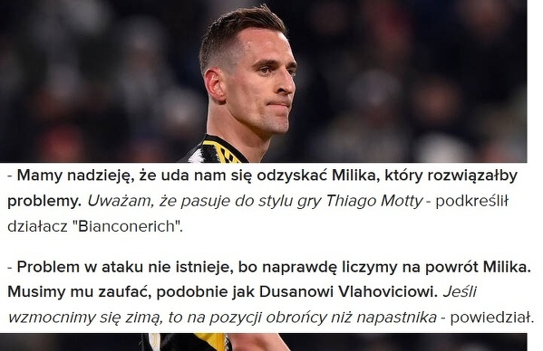 Juventus liczy na Milika
