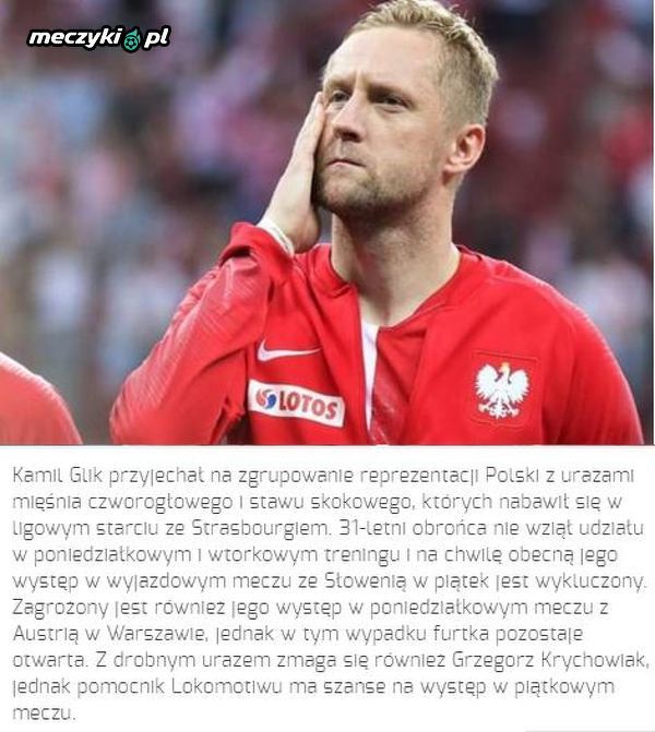 Kamil Glik może nie zagrać w meczach ze Słowenią i Austrią