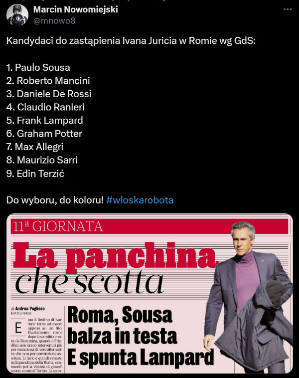 Kandydaci na nowego trenera Romy według La Gazzetta dello Sport