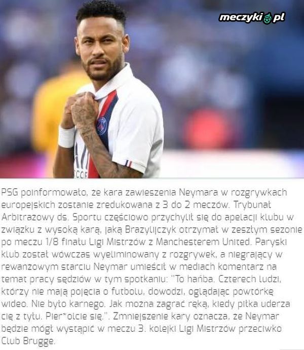 Kara Neymara została skrócona