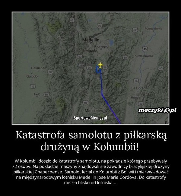 Katastrofa samolotu z pilkarska druzyna w Kolumbii !!!