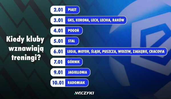 Kiedy ekstraklasowe kluby wznawiają treningi Kiedy ekstraklasowe kluby wznawiają treningi