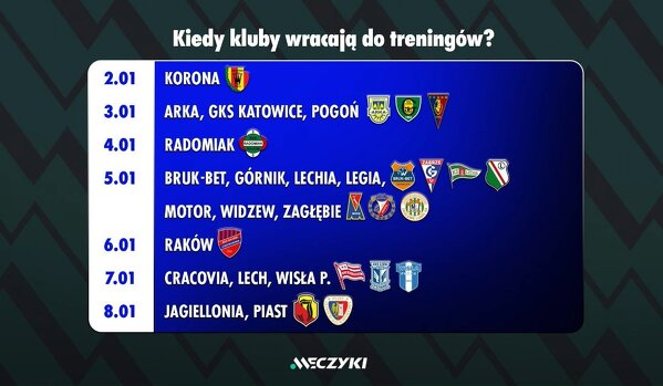 Kiedy kluby Ekstraklasy wracają do treningów?