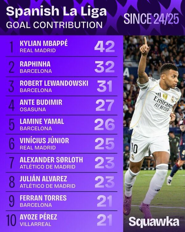 Klasyfikacja kanadyjska LaLiga od sezonu 2024/25