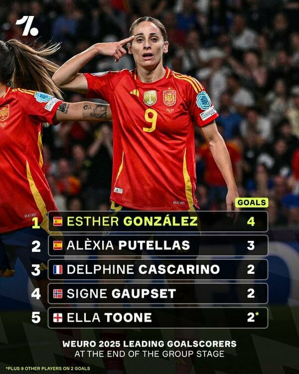 Klasyfikacja najlepszych strzelczyń po fazie grupowej Euro 2025