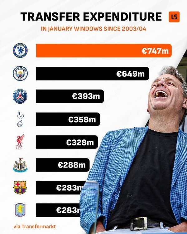 Kluby, które łącznie wydały najwięcej w zimowych okienkach transferowych licząc do sezonu 2003/04