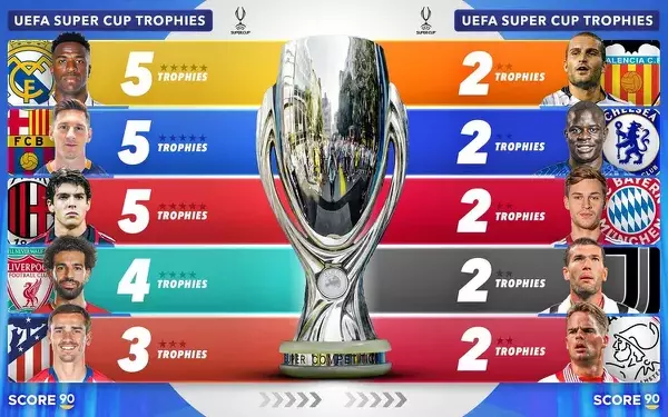 Kluby, które najwięcej razy wygrywały Superpuchar Europy