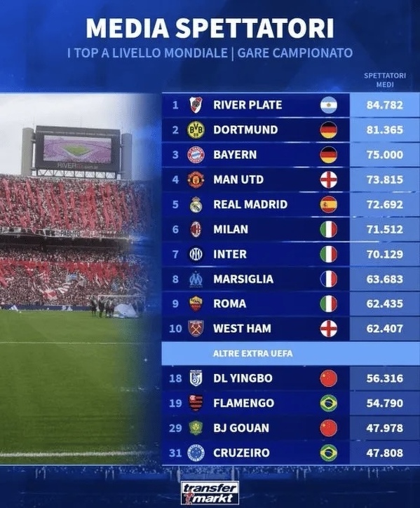 Kluby z największą frekwencją kibiców na trybunach