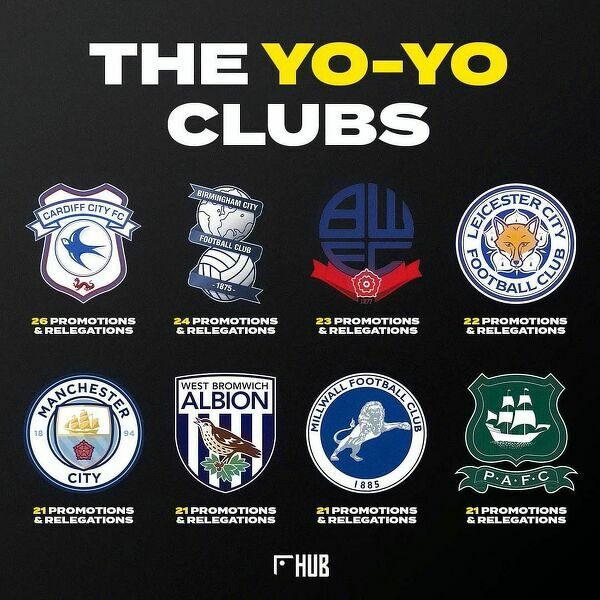 Kluby z największą liczbą spadków i awansów w historii angielskich rozgrywek ligowych