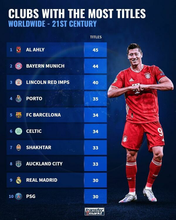 Kluby z największą liczbą tytułów w XXI wieku