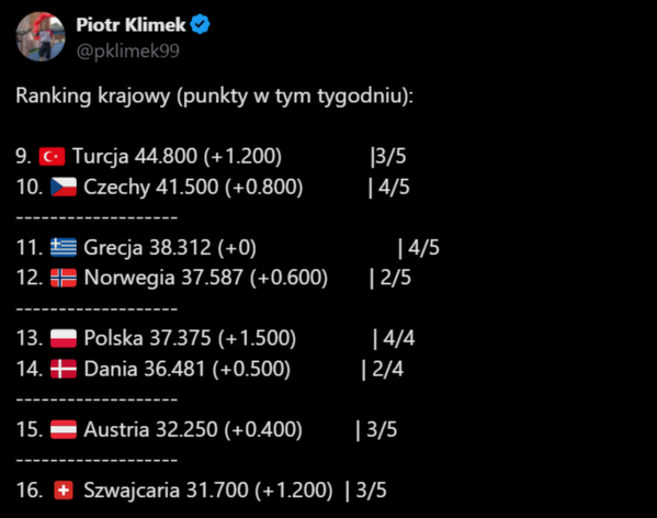 Kolejne punkty polskich drużyn do rankingu krajowego
