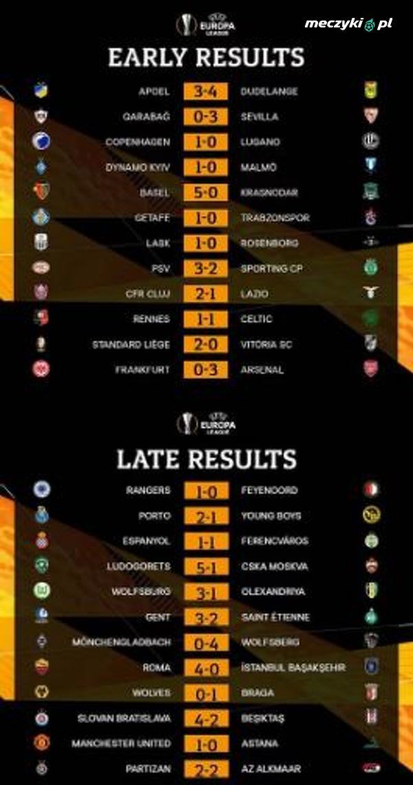 Komplet wyników 1.kolejki Ligi Europy