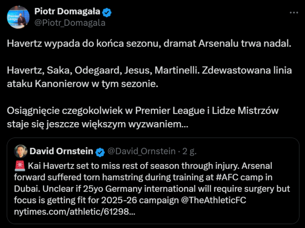 Kontuzja Havertza. Piłkarz Arsenalu ma sezon z głowy