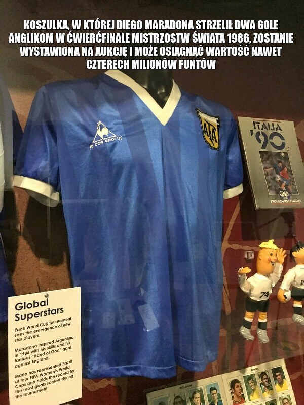 Koszulka Diega Maradony, w której zdobył dwie niezapomniane bramki, na aukcji